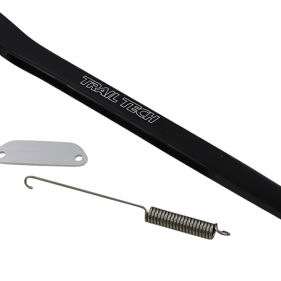 Caracteristicas: Custom designed, strong, lightweight and attractive Ultra-high-strength chromoly mounting bracket Lightweight, high-strength forged aluminum stand Aluminum reinforced high-impact nylon foot at base of stand with no sharp edges Extra-tough black ceramic coating Tucks out of the way of the rider Measure 15-1/2" L Easy installation with no modifications required (mount to stock mounting points)