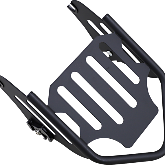Caracteristicas: Fits Harley Davidson Touring Models with a 4-point docking hardware kit Carrying Surface: 10" x 10" Mounting Distance: 9 3/4" (measured from inside to inside of the mounting plates) Materials: 3/4" steel tubing, 16 gauge Steel Carrying Limit: 10 lbs Comes with Rotary Latches installed and ready to install onto the bike Must have a 4-point Docking Hardware Kit for proper installation Made in the USA