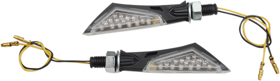 • Super-bright micro stalk lights that can be mounted on license plate brackets or on all four corners of a naked bike; both available in black matte
