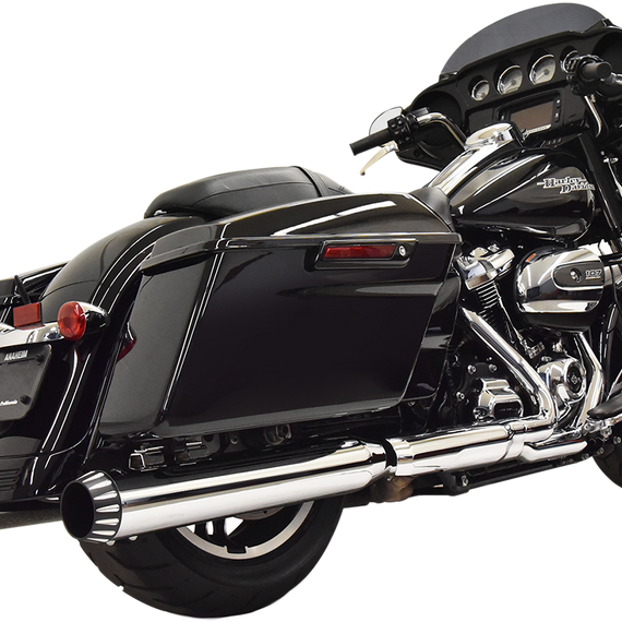 Caracteristicas: Developed using Bassani's 4" DNT cans and welding a silencer chamber inside to bring the db levels down Perfect for urban areas Feature a stepped, perforated, and louvered baffle with a non-removable quiet insert 16-gauge steel construction throughout Baffle and end cap are removable For use with OEM-style headpipes