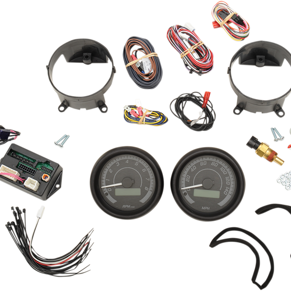 Caracteristicas: New MVX Series Analog/Digital Bagger Gauges offer two bezel options, four background choices, and seven lighting colors to choose from - the combinations are nearly endless Whether installing a six-gauge set, or building your perfect gauge set from Dakota Digital's optional gauges, you will get all seven gauge readings displayed in the speedometer and tachometer LCD readouts (speed, rpm, volts, fuel, oil pressure, oil temp, and air temp), as well as miles to empty, and performance readouts (0-60 time, and quarter-mile speed and time) Personalize your gauge set by programming the pointer, backlight, and LCD message center colors independently Six-gauge kits include speedometer, tachometer, oil pressure, oil temperature, fuel level, and voltmeter Two-gauge kits include speedometer and tachometer (will display other gauge readouts in odometer) Optional fuel level gauges, oil pressure gauges, oil temperature gauges and voltmeter can only be used with MVX six- and two-gauge kits; they will not work alone Seven user-selectable LED lighting colors available for background, message, and pointer: red, green, blue, teal, magenta, amber or white Proudly designed and manufactured in the U.S.A. Plug directly into the MVX and MCL-3014 series gauges and add readings for up to two air suspension pressure, boost pressure, or compass heading into the existing LCD displays of the speedometer and tachometer This makes it extremely easy to add these gauge readings without having to remove any of your existing MVX gauges