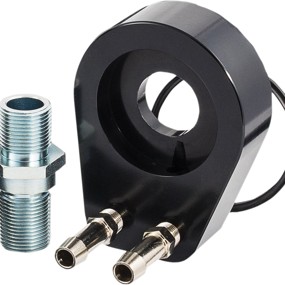 Caracteristicas: Installs between the oil filter landing and the oil filter on Yamaha Bolt models for easy access to the oil supply to install an oil cooler Flows oil through the filter first, for optimal flow characteristics Oil filter adapter body is CNC machined from billet aluminum and anodized to a satin black finish Fittings are 3/8" push-on hose barbs for use with 3/8" / -6AN hose size