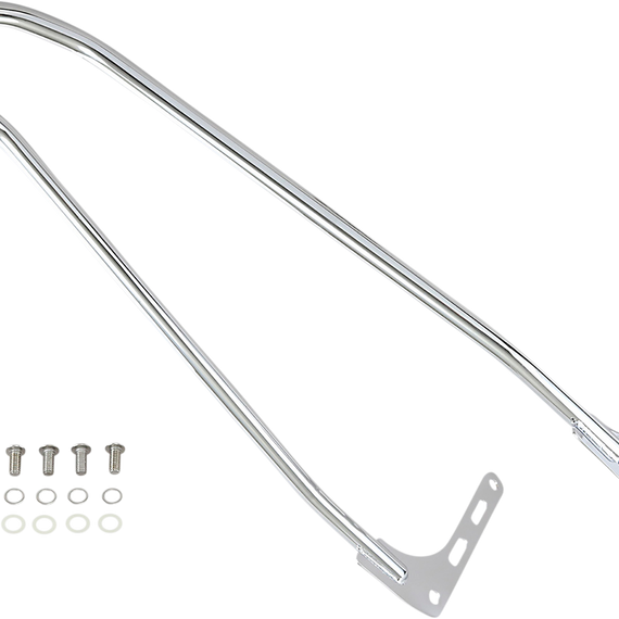 Caracteristicas: Classic paperclip-style bar bolts directly to fender struts Features 3/4" x .120" DOM round steel tubing 25" tall from center Beefy profile and clean installation Designed to complement two-up and solo seats Includes backrest pad measuring 9" H x 7" W Made in the U.S.A.