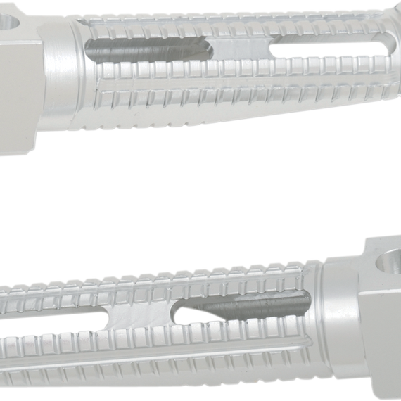 Caracteristicas: CNC-machined from 6061 T-6 billet aluminum; replace stock footpegs Lighter than stock, slash cut for greater ground clearance; have machined, not knurled, grooves for better grip