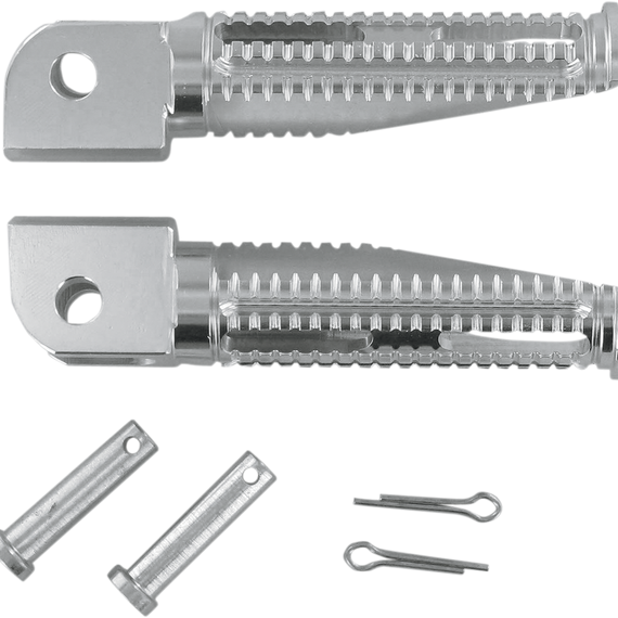Caracteristicas: CNC-machined from 6061 T-6 billet aluminum; replace stock footpegs Lighter than stock, slash cut for greater ground clearance; have machined, not knurled, grooves for better grip