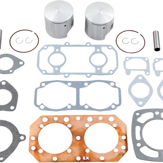 Caracteristicas: Most Wiseco 2-cycle pistons are forged from high-silicone bar stock Greater strength and lower expansion at high temperatures Complete piston kits include High-Performance forged pistons, rings, wrist pins, circlips and top-end gasket kit for one complete engine All Wiseco High-Performance pistons are priced with rings, wrist pins and circlips Wiseco ring types are not interchangeable (i.e., CD is not interchangeable with LC) and fit only Wiseco pistons WARNING: Wiseco pistons can be fitted only with Wiseco rings.