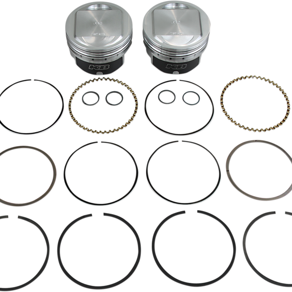 Caracteristicas: Manufactured from high-strength, T-5 heat-treated, 390 hypereutectic aluminum alloy Allows a tighter fit and longer piston and ring life Diamond-machined pistons are held to plus or minus one gram weight and less than one-half-thousandth-inch (.0005") tolerances from piston to piston Each kit contains two pistons, pins, spiral-lock pin clips and Hastings moly rings Replacement piston rings sold separately KB pistons can be installed tighter than other pistons. This results in less piston rock and better ring seal. Please read instructions included with piston for correct piston clearance Due to the thermal conductivity and design of KB pistons, special attention is required to the top ring end gap. Please read instructions furnished with piston for correct ring installation Use lock rings Part #0913-0001 (4-pk)