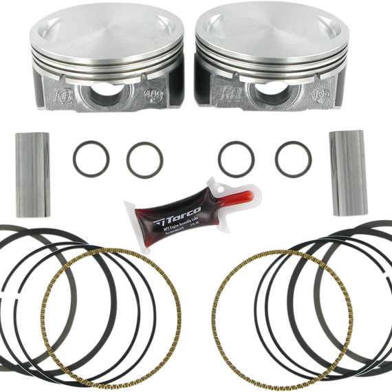 • Each kit contains two pistons, pins, spiral-lock pin clips and Hastings moly rings