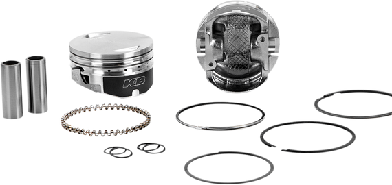 Caracteristicas: Manufactured from high-strength, T-5 heat-treated, 390 hypereutectic aluminum alloy Allows a tighter fit and longer piston and ring life Diamond-machined pistons are held to plus or minus one gram weight and less than one-half-thousandth-inch (.0005") tolerances from piston to piston Each kit contains two pistons, pins, spiral-lock pin clips and Hastings moly rings Replacement piston rings sold separately KB pistons can be installed tighter than other pistons. This results in less piston rock and better ring seal. Please read instructions included with piston for correct piston clearance Due to the thermal conductivity and design of KB pistons, special attention is required to the top ring end gap. Please read instructions furnished with piston for correct ring installation Use lock rings Part #0913-0001 (4-pk)