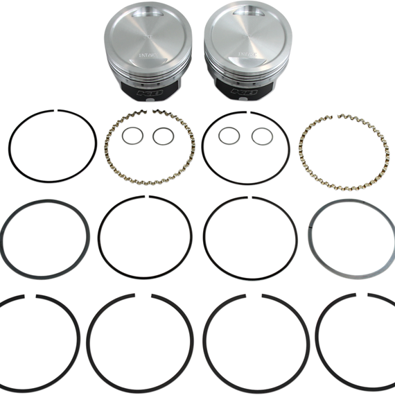 • Each kit contains two pistons, pins, spiral-lock pin clips and Hastings moly rings