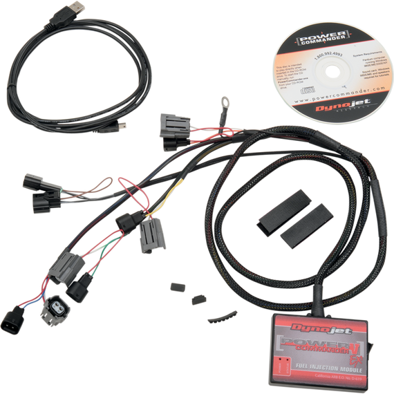 Caracteristicas: The Power Commander V can read the exact engine temperature through the bike's ECM, which allows the tuner to choose how much fuel to add during cold starts Power Commander V is capable of allowing each cylinder to be mapped individually and for each gear with the gear position input connected Can add any Single Pole Single Throw (SPST) switch and toggle between two different fuel/timing maps Cold starting on heavily modified engines should be more controllable and easy to adjust Build an adjustment table based on analog input, such as boost or temperature Two position map-switching function built-in (switch not included) Gear/speed input allows for map adjustment based on gear Analog input allows user to install any 0-5 volt sensor World's largest dyno tested map database Ten throttle position columns USB powered from computer Enhanced "accel pump" utility Rev Xtend increases Rev limit Fuel and timing control Made in the U.S.A.