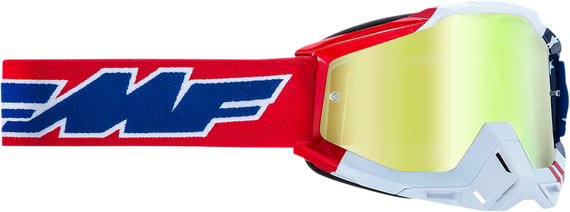 Caracteristicas: Removeable nose guard deflects roost and debris Anti-fog coated polycarbonate lens for clear vision Triple layer moisture managing face foam soaks up sweat 45 mm ultra-wide silicon coated strap ensures a secure fit 9 retention points secure lens in frame All adult FMF goggles share the same lens and tear-offs