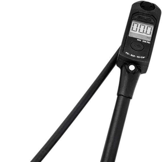 Caracteristicas: Compact pump with digital gauge for adjusting air pressure For use with a variety of makes and models Uses a flexible hose with no-loss connector for reaching air valves in tight spaces Accurate gauge and micro-adjust air bleed allow for precise air fill in shock or forks Accurate (+0.5 psi) pressure gauge Precise fill and bleed