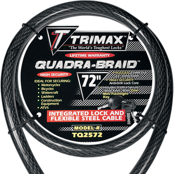 Caracteristicas: Feature 10' x 10mm Trimaflex™ ultra-tough braided cable Resettable combination MAG series lock Great for use on bikes, bike carriers, trailers or watercraft on the beach