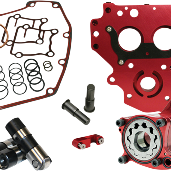 Caracteristicas: Combine all the needed components to finish your T/C® engine's oiling system These kits increase oil pressure, oil volume, engine oil flow and return oil scavenging, eliminating wet sumping and oily air cleaners; test results show 25-35 degree cooler engine temperatures, 15-30 degree cooler oil temperatures, 15-30 more lbs of oil pressure and quieter smoother engine operation; results also show a substantial increase of oil pressure and 3 H.P. and 4 ft/lbs. of torque to the rear wheel Includes bearing retainer plate and hardware.