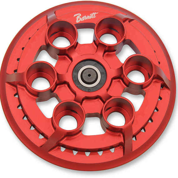 Caracteristicas: Designed for form and function! This great looking durable pressure plate is CNC precision machined from 6061-T6 billet aluminum The attractive reinforced design also helps protect your clutch assembly in the event of a low-side or tip over The bearing and clutch control pin are also included and installed for easy, trouble-free installation