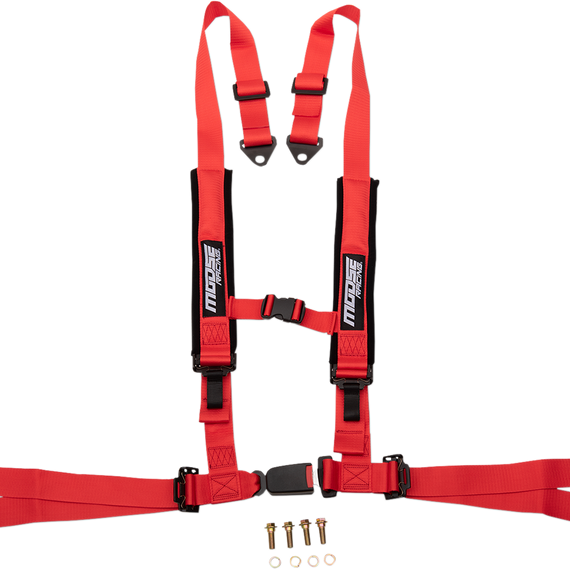 Caracteristicas: Four point restraint system 2” wide straps for comfort and safety Extra-large padded chest/shoulder straps Easy adjustment and release of the shoulder and lap straps Single click automotive buckle for easy entry and exit Integrated chest buckle to keep the straps in place on your shoulders Universal bolt in or loop over roll cage installation for most UTV’s.