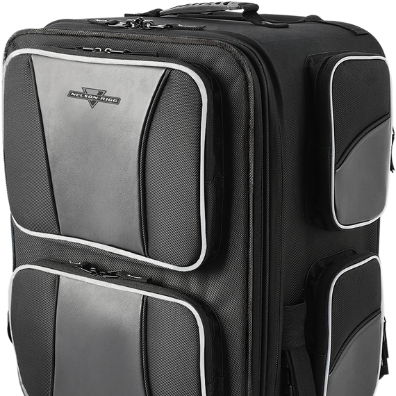 • Telescopic handle and integrated wheels for transport off your motorcycle