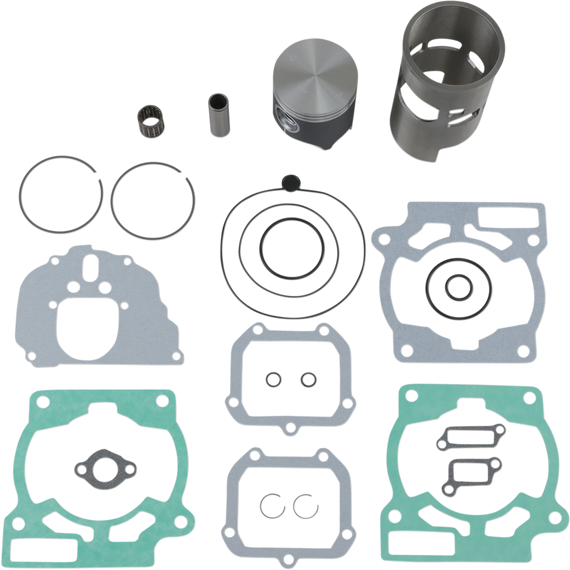Caracteristicas: The foremost compatible top-end rebuild kit all in one box Feature a Moly2000 centrifugally-spun, cast cylinder sleeved iron bore to provide better ring seal for better compression, more torque and more horsepower 2-stroke kit comes complete with wear-resistant Moly2000 centrifugally-spun, cast cylinder sleeve, matching pro-forged or pro-cast piston kit, wrist pin bearing and complete top-end gasket set