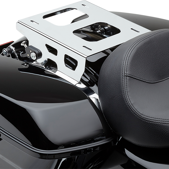 Caracteristicas: Mount this tour pack to Solo Seat equipped Street Glides or Road Glides or other Dresser/2014-2020 Baggers Heavy gauge American steel - laser cut, form, then polish to a high luster before chrome plating or black powder coating Detachable racks use proprietary pull-pin release mechanism, and can be installed or removed in a matter of seconds Made in the USA