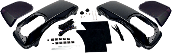 Caracteristicas: Kit includes High-Impact ABS replacement saddlebag lids, lid tethers, grilles, grommets, wire harness and required hardware Disassembles easily for paint Accepts OEM and aftermarket latches Required amplifier and optional speakers are not included.