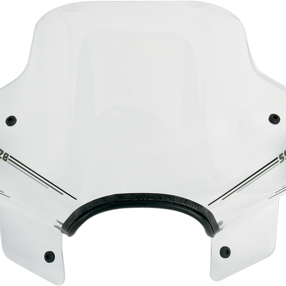 Caracteristicas: A sleek, contemporary style for yesterday's and today's cruiser bikes Constructed of high-strength, 3/16" acrylic Anodized-aluminum support rods, logo graphics Four-point, universal mounting with round or rectangular headlights Height: 15" above headlight; width: 29" Fits both 7/8" and 1" handlebars Made in the U.S.A.
