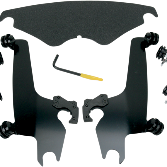Caracteristicas: Gone are the days of fumbling with tools to remove your windshield The revolutionary No-Tool Trigger-Lock hardware features an innovative system that allows you to quickly and easily remove your windshields without the use of any tools A pair of latches lock the windshield down until the spring loaded "trigger locks" are intentionally disengaged, allowing the rider to remove the windshield Hardware is fully adjustable to achieve just the right windshield angle Kits are custom-fit to each style of bike for a truly no-hassle installation Made in the U.S.A.