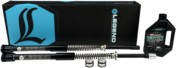 Caracteristicas: Improve the stability, cornering and traction of your motorcycle Smooth, controlled ride quality; kits eliminate front-end dive during aggressive braking and maneuvering Firm feel for high-speed sweeping turns Eliminate bottoming out on large bumps or potholes Reduce dragging of floorboards or pegs Kits include two mono-tube, dual-chambered fork damping cartridges Cartridges have nitrogen chambers with internal floating pistons Machined 303 stainless steel threaded fork preload adjusters Increased range of preload settings allows fine-tuning of the front suspension for riding style and rider weight Performance fork spring rate Designed for optimum performance with Legend® rear suspension systems Easy installation Includes Maxima Racing Oil in cartridges and quart bottle Lifetime Warranty Made by hand in Sturgis, SD USA This product is NOT designed for use with 21" and 23" wheels