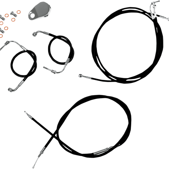 Standard Black Vinyl Braided Handlebar Cable/Brake Line Kit For 15" - 17" Ape Hanger Handlebars