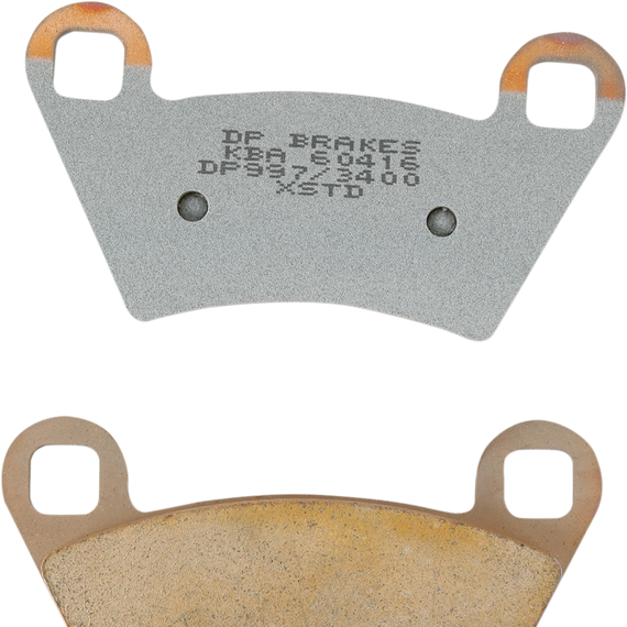 Caracteristicas: DP Brakes Brake Pads are designed with sintered metal compounds to give your ATV high-tech performance in all conditions Pads have a quick break-in period so you get maximum performance fast DP Brakes design and materials ensure consistent, hard stops and fade-free performance Sintered metal compounds outlast more conventional organic or aramid fiber pads Use DP Brakes Rotors in conjunction with DP Brakes Brake Pads for the ultimate in braking performance GG-friction rated and made with DP Brakes' proven sintered-metal material Gray-colored aluminum oxide-based ceramic material on rear of back plate keeps heat away from caliper piston and fluid in extreme conditions for fade-free performance Pad compound gives equal performance in wet or dry conditions The ideal replacement pad where durability is the prime requirement TUV/KBA approved to EEC braking regulation 13/05 Bright, attractive pegboard packaging