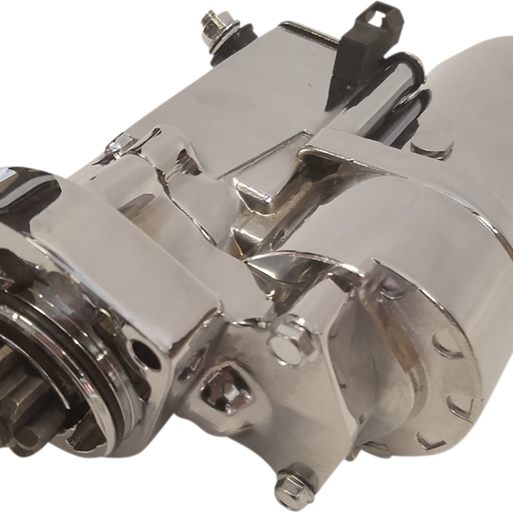 Caracteristicas: Solenoid plunger, return damper and springs are replaced with stronger components Clutch shaft and rollers are replaced with precision-ground and hardened parts for longer service life All components are assembled with a special lube for starter roller clutch applications CNC-machined billet mounting noses are held together with aerospace fasteners After assembly, all starters go to a dyno test including hi-low voltage, stall torque, solenoid engagement, amperage draw, load test, maximum rpm and motor impulse wave form Starters have a 4.4:1 gear reduction and produce 46% more cranking torque than the stock starter Made in the U.S.A.