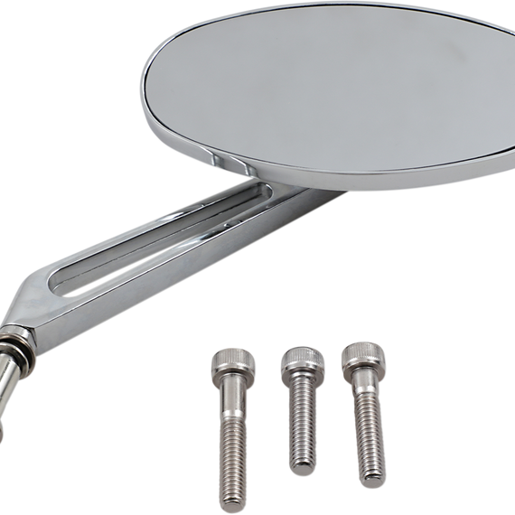 Caracteristicas: "Blue Sapphire" design looks great and helps reduce glare The original Stealth I mirror with a 4-3/4" stem; works great on most pullback and Ape Hanger bars Stems fit all Stealth mirror heads plus most OEM and aftermarket OEM-style mirror heads that thread at the mirror head All feature familiar stud-style mounting common to other mirrors, or we supply chrome socket head Allen bolts for a new style of custom mounting Oval head measures 5" x 2-1/2"; right- or left-side installation Mirror head screws and pivots are stainless steel Mount on 1999-2020 H-D clutch or brake lever housings and most custom mounting applications