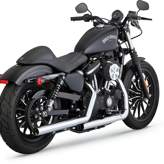 Caracteristicas: Straightshots Slip-ons offer the same great look and sound riders have grown to love from Vance & Hines at an unbelievable value Drenched in Vance & Hines show-quality chrome, massive 2-1/2" diameter plasma arc-cut, 220° full-coverage muffler heat shields house the Straightshots HS slip-ons and make them blue-proof for long-lasting style Race-inspired performance and traditional hot rod sound set this system apart Mount to the stock header pipes with no modifications Include removable baffles and all the mounting hardware for a hassle-free, perfect fit every time Made in the U.S.A.