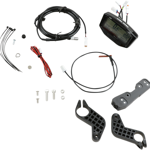 Caracteristicas: Speed/Distance/Voltage/Temperature/Clock Speedometer functions: current, average, maximum; selectable MPH/KPH Distance functions: trip, odometer, adjustable distance; selectable mile/kilometer Voltage function: voltage, maximum, minimum Temperature functions: engine temp, ambient temp, max engine temp, temp with LED alerts, model-specific sensors; selectable F/C scale Clock functions: hour meter, stop watch, ride time, accumulated ride time; selectable 12/24 hour display Maintenance: oil reminder, wrench reminder Power input: accepts any power input AC/DC, auto-switch to internal battery, permanent memory (data never lost) Waterproof design with high-intensity LCD white backlight display Optional top-mount gauge mount available separately - See Related Products