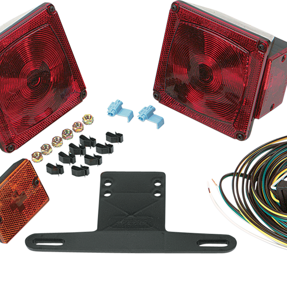 Caracteristicas: Standard taillights and wiring for a wide variety of trailers Specifically designed for trailers under 80" wide; with clearance lights and ID bars, kit meets lighting requirements for trailers 80" wide and wider Kit contains two multi-function taillights, plastic license plate bracket, 20' wishbone trailer harness, 48" trunk connector, mounting hardware and instructions Taillights and license plate bracket also available separately (sold each)