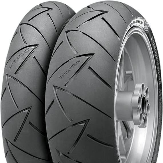 Caracteristicas: Features Continuous Compound Technology - a single compound is used that through a temperature-controlled curing process delivers the benefits of a multi-compound tire without the abrupt transition between the different compounds that other multi-compound tires are known for; Center Tread Area, wear resistant = Mileage; Shoulder Tread Area = Increased grip from center to shoulder; Continuous Transition from Center to Shoulder = Smooth and predictable performance Traction Skin, the revolutionary new micro-toughness of the tread, optimizes the mechanical adhesion and offers the fastest break-in period in the market Revolutionary technology that offers a level of grip, confidence, mileage and dynamics never known before in the sport-touring radial market Road Attack 2 GT features special construction design of the carcass, which improves the stability and handling on heavy touring bikes Features DynamicRideTechnology, a patented steel belt construction with a unique contour to improve overall handling and control "Black Chili" compound for quick warm-up, short braking distance on wet and dry roads Tubeless (TL) Blackwall
