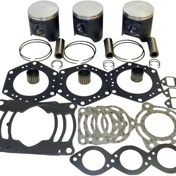 • Include pistons, rings, pins, clips, racing needle bearings, head and base gaskets, intake and exhaust gaskets