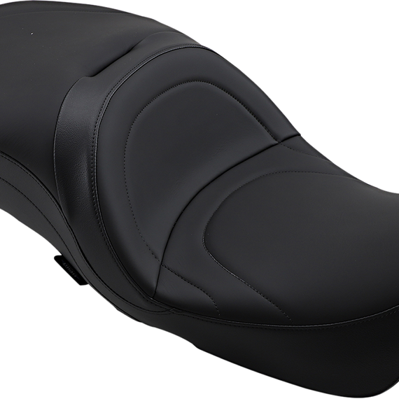 Caracteristicas: Solar-reflective leather in the seating area and automotive-grade vinyl on the sides; patented process reduces surface temperature by as much as 25° F for a cooler seat, higher durability and longer life over conventional leather or vinyl The driver area is cut narrow in the front and is approximately 1" lower than the stock seat Molded flexible urethane foam interior for maximum comfort 3/16" ABS thermoformed base for a perfect fit Carpeted bottom with rubber bumpers to protect paint Large touring seat with new styling and improved shape for added comfort Accept driver backrest (sold separately) Also work with H-D® OEM frame mounted mechanism and backrest pad Include all mounting hardware Made in the U.S.A.