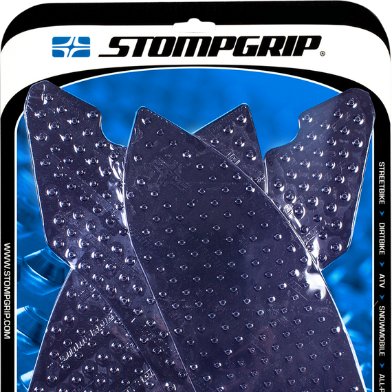 Caracteristicas: Make gripping your ride incredibly easy for increased bike control with more contact between bike and rider Provides more lower body grip and less upper body stress Ultra-clear proprietary elastomer material means paint and graphic remain visible through traction pads Non-abrasive material; designed to wear down and be replaced like a tire Will not wear down leathers as compared to grip tape Pre-molded with rounded edges that resist peeling Super-strong 3M™ peel-and-stick adhesive Made in the U.S.A.