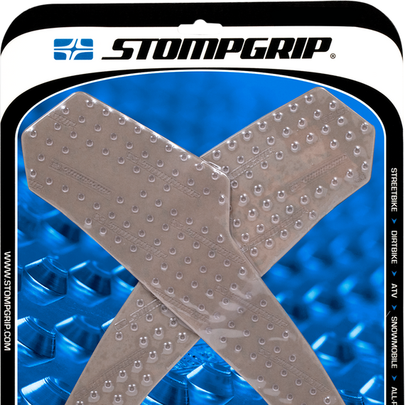 Caracteristicas: Make gripping your ride incredibly easy for increased bike control with more contact between bike and rider Provides more lower body grip and less upper body stress Ultra-clear proprietary elastomer material means paint and graphic remain visible through traction pads Non-abrasive material; designed to wear down and be replaced like a tire Will not wear down leathers as compared to grip tape Pre-molded with rounded edges that resist peeling Super-strong 3M™ peel-and-stick adhesive Made in the U.S.A.