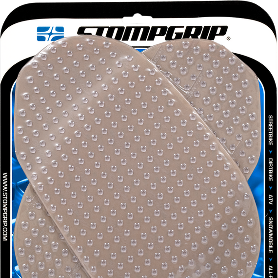 Caracteristicas: Make gripping your ride incredibly easy for increased bike control with more contact between bike and rider Provides more lower body grip and less upper body stress Ultra-clear proprietary elastomer material means paint and graphic remain visible through traction pads Non-abrasive material; designed to wear down and be replaced like a tire Will not wear down leathers as compared to grip tape Pre-molded with rounded edges that resist peeling Super-strong 3M™ peel-and-stick adhesive Made in the U.S.A.
