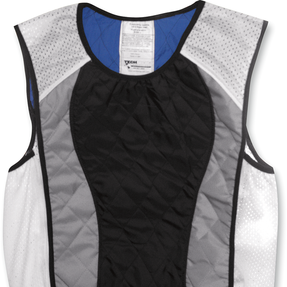 Caracteristicas: Pullover with mesh ventilation panels and scoop neck; ideal for runners and cyclists Provide 5-10 hours of cooling relief per soaking; extremely lightweight, durable and washable Comfortable, quilted nylon outer with polymer embedded fabric inner, water-repellent nylon liner and black cotton-poly elastic trim
