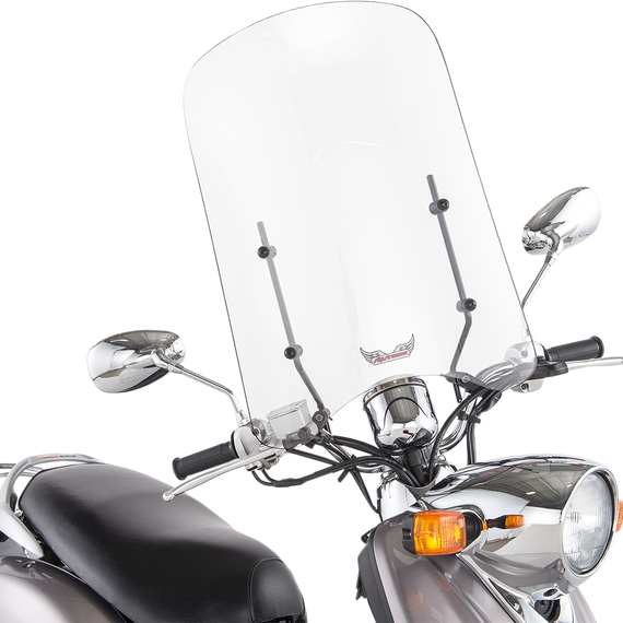 Caracteristicas: These clear windshields offer both style and protection from the elements Constructed of 3/16" clear acrylic Top edge is scientifically designed to direct windblast above rider's head Anodized-aluminum mounting hardware will not rust Four-point mounting provides adjustments for shield height, position and angle Made in the U.S.A.