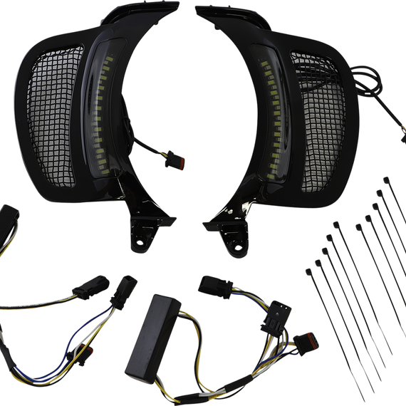 Caracteristicas: Bolt on to the left and right sides of the factory headlamp Provides LED white running lights and amber turn signals Feature a stainless steel mesh to fill the void between the fairing and headlamp
