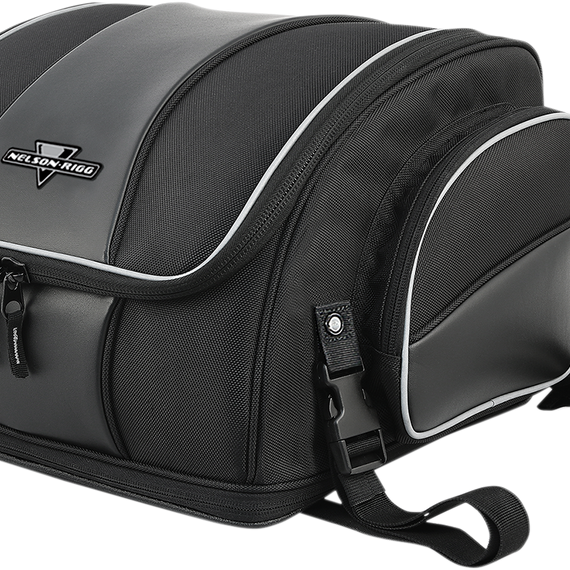 Caracteristicas: Industry leading UltraMax® fabric for maximum UV protection Mounts to luggage/tour trunk racks, sissy bar or seat using quick release and self-fastening straps Fully expandable holds one full face helmets 2 outer pockets for quick access items and lockable zippers Rigid construction an solid base panel prevents sagging Reflective piping enhances visibility; waterproof rain cover included