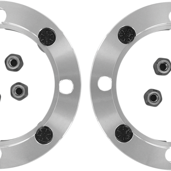 Caracteristicas: Enable use of larger aftermarket tires that won't rub against shocks, struts and/or exhaust Increase stability by moving wheels out slightly from hubs and shocks No OEM studs are required to be removed; stud extenders are not used. Wide Tracs bolt to OEM studs; wheel is then bolted to grade 8 Wide Trac stud (included). Spacers are comparable to automotive-grade wheel adapters; design is the strongest available for ATVs.