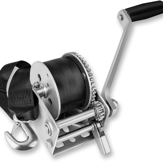 Caracteristicas: Comfortable grip handle makes cranking a snap 900-lb. capacity Zinc-plated finish for superior corrosion protection 3.1:1 gear ratio lowers handle effort for smooth, easy operation Two-way ratchet, offset handle and nylon strap with hook-and-loop fastener Replacement winch strap with hook available separately; measures 2" x 12' and features an 1,800-lb. maximum working load Made in the U.S.A.