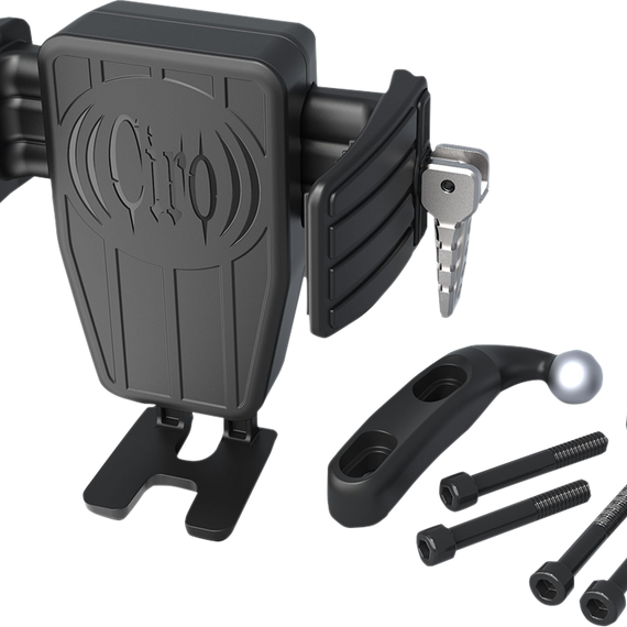 Caracteristicas: Supports up to 15W wireless charging IOS and Android support Fast charge capable Waterproof electronics Strong reinforced black nylon components with soft touch high-grip fingers Easy one-handed operations Securely grips almost any phone including the case Adjustable from 2-3/8” wide to 4” wide Compatible with all Ciro ball mounts Rotates 360 degrees allowing portrait or landscape display Simple wire harness included, connects directly to any 12v battery with included in-line fuse Locking handle can be used on either side of holder Adjustable gripping force Adjustable bottom foot to accommodate a variety of phone heights Conforms to Qi standard of wireless power transfer developed by the Wireless Power Consortium