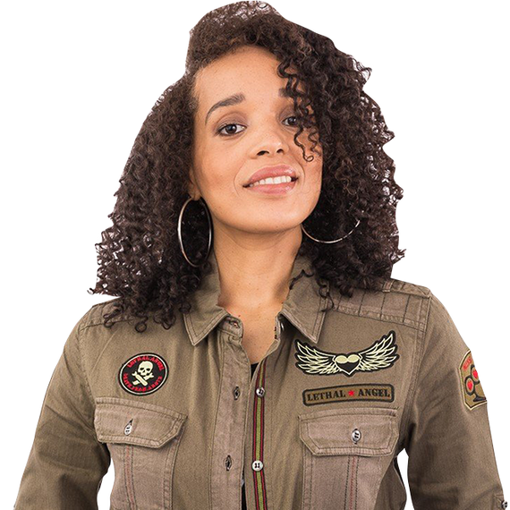 Caracteristicas: Pre-shrunk cotton button-down shirt that can be worn on its own, or over a tee as a lightweight jacket Vintage wash effect for distressed look and added softness Full color back embroidery of the Lethal Angel® Flying Tiger design Accent shoulder patches and front Lethal Angel over pocket patches Detailed stitch accents Metal buttons