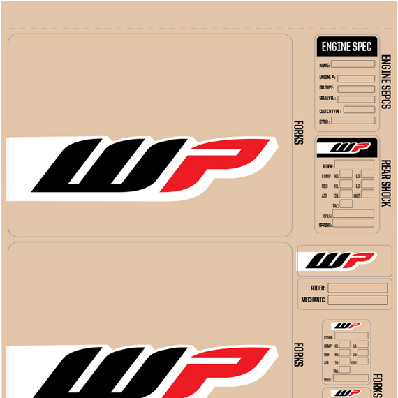 Caracteristicas: Contain forks, shock and suspension settings and engine settings decals Factory look "spec decals" for rider specific settings Write down your settings like the factory race teams do Printed on clear, 15-mil vinyl